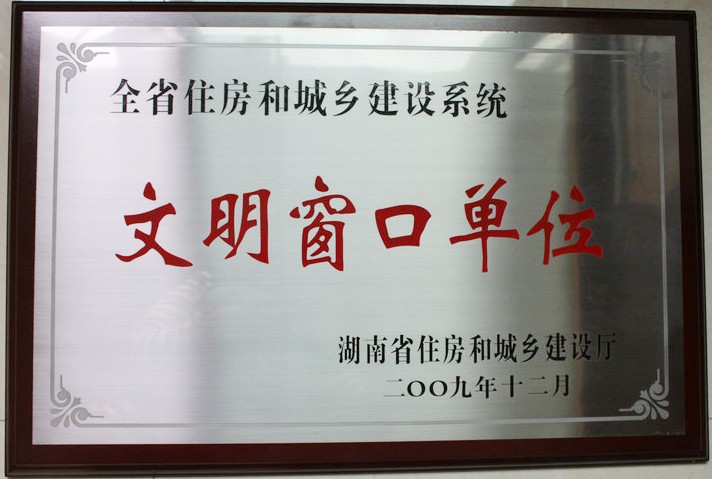 - 2009年12月被湖南省住房和城鄉(xiāng)建設廳評為“全省住房和城鄉(xiāng)建設系統(tǒng)文明窗口單位”